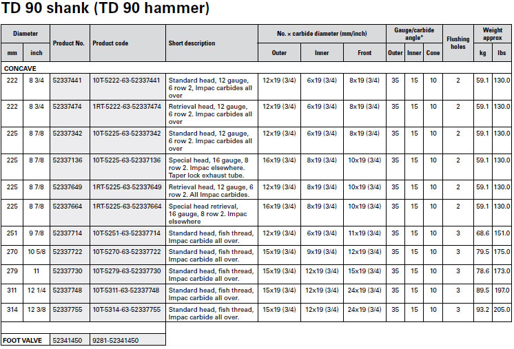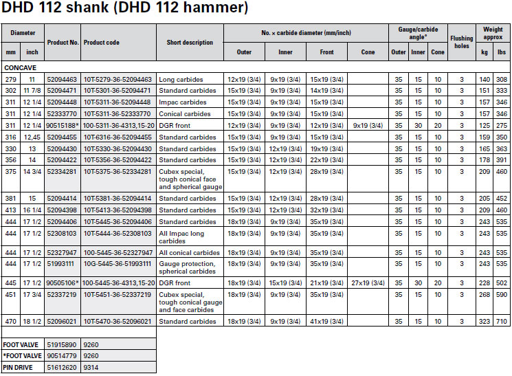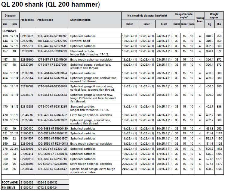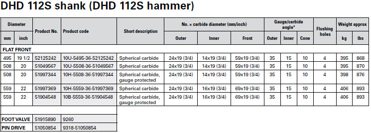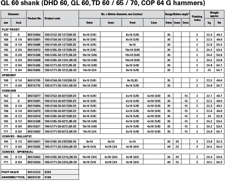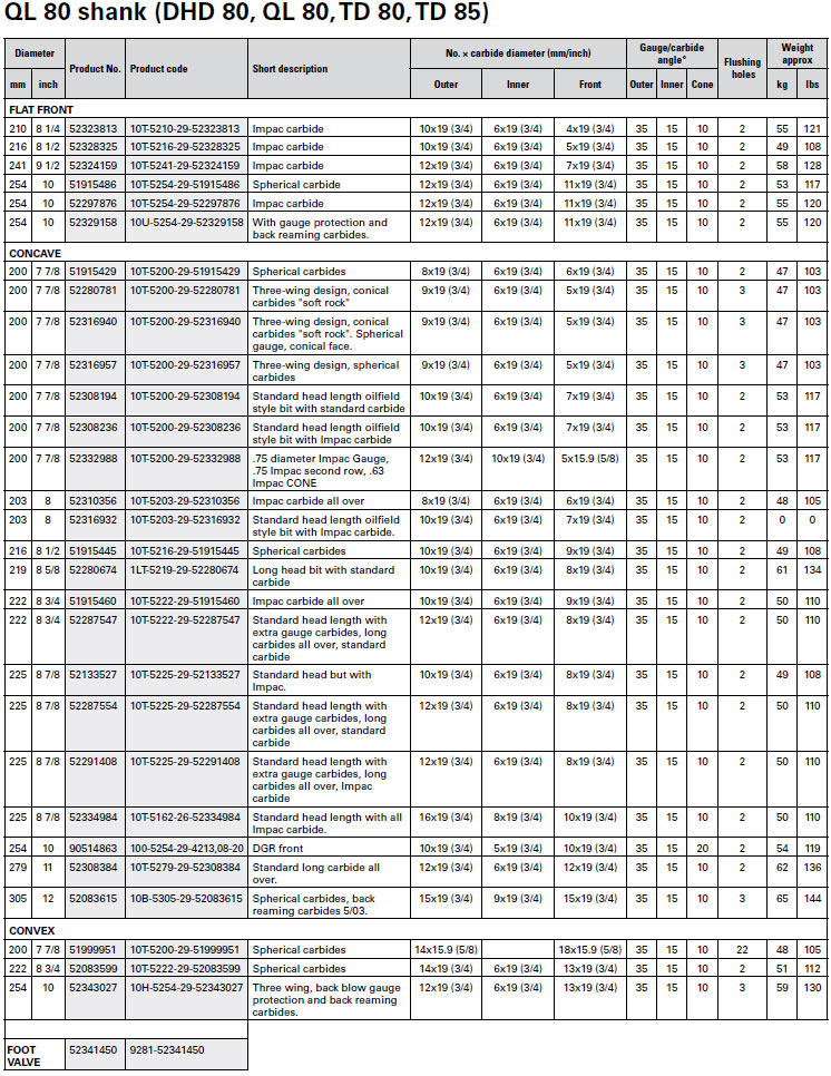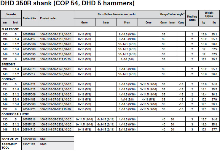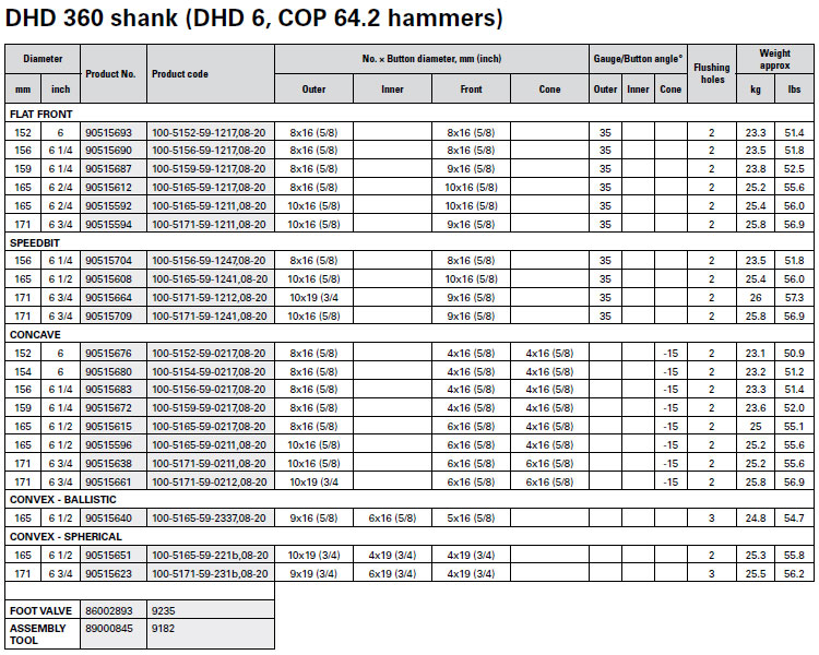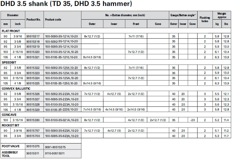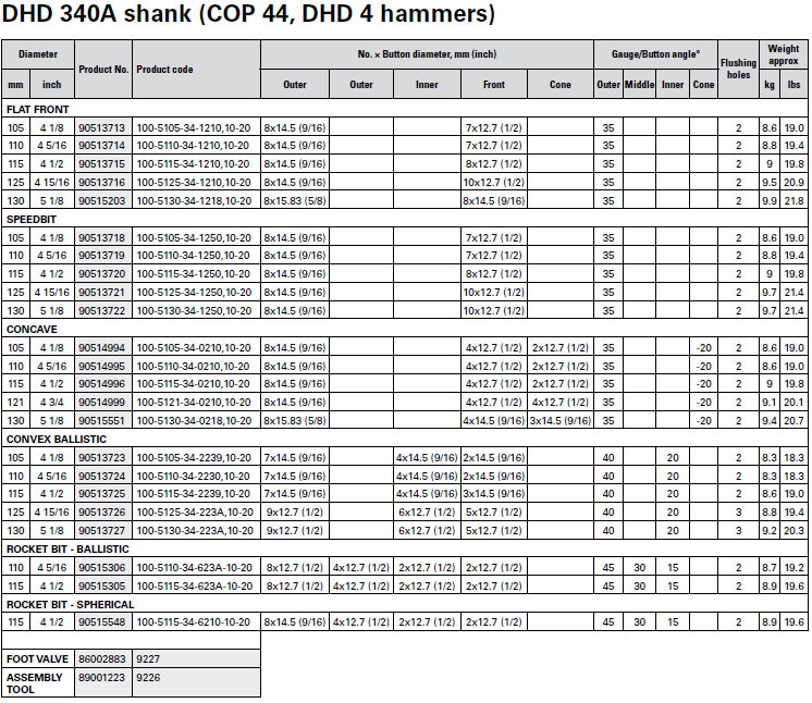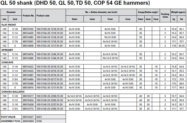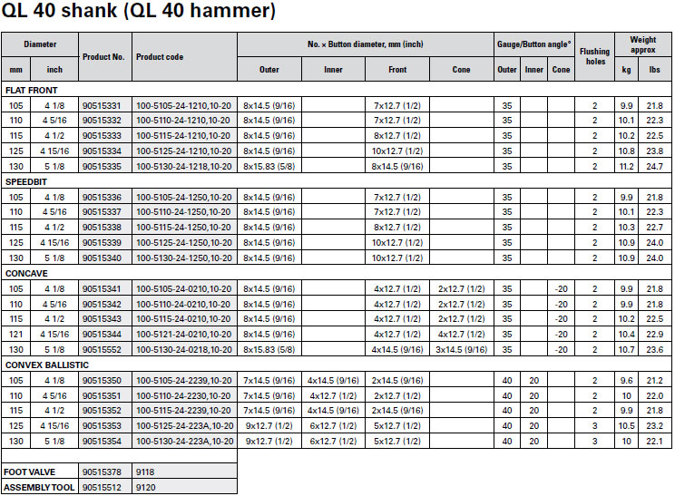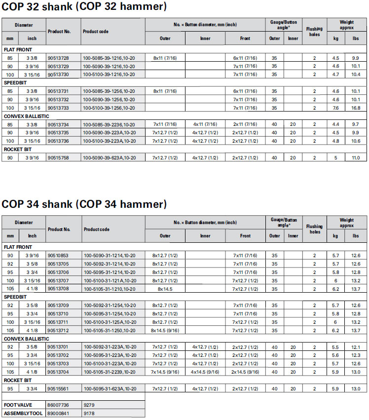 Bits are manufactured to match all diameters of . Secoroc hammers.