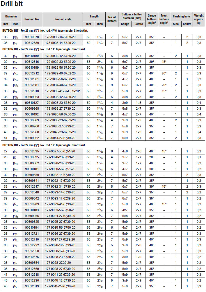 The Secoroc Uppercut range compromises button and cross-type bits in an extensive selection of design configurations. Moreover, we’ve added two new models with an extra front button for improved hole straightness, higher penetration rate and a longer service life. These designs can be used in a variety of rock formations for maximum productivity. Furthermore, our range of ballistic button bits is in the process of being extended to meet ever more diverse demands.
